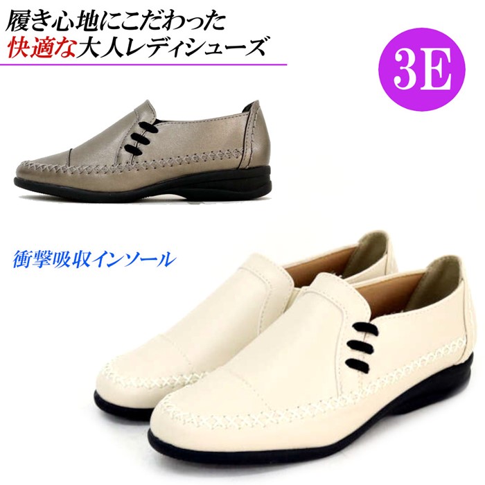 正規通販 スリッポン カジュアルシューズ ミセス お洒落シューズ 3e 幅広 コンフォートシューズ レディース スリッポン ステッチ シルバー ベージュ Www Ethiopianreporter Com